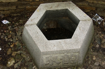 韵泉在袁洪峪度假村内琴泉下方,为一六角形井。井口不大,井内水波不惊。先有资料未见记载。
