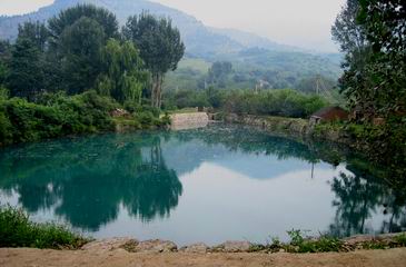 从济南南部的仲宫镇向东约四公里,有一个向南的路口,从此路口沿山路前行不远就是大泉村。大泉在村西南角,有自流灌溉水渠将泉水引出。
